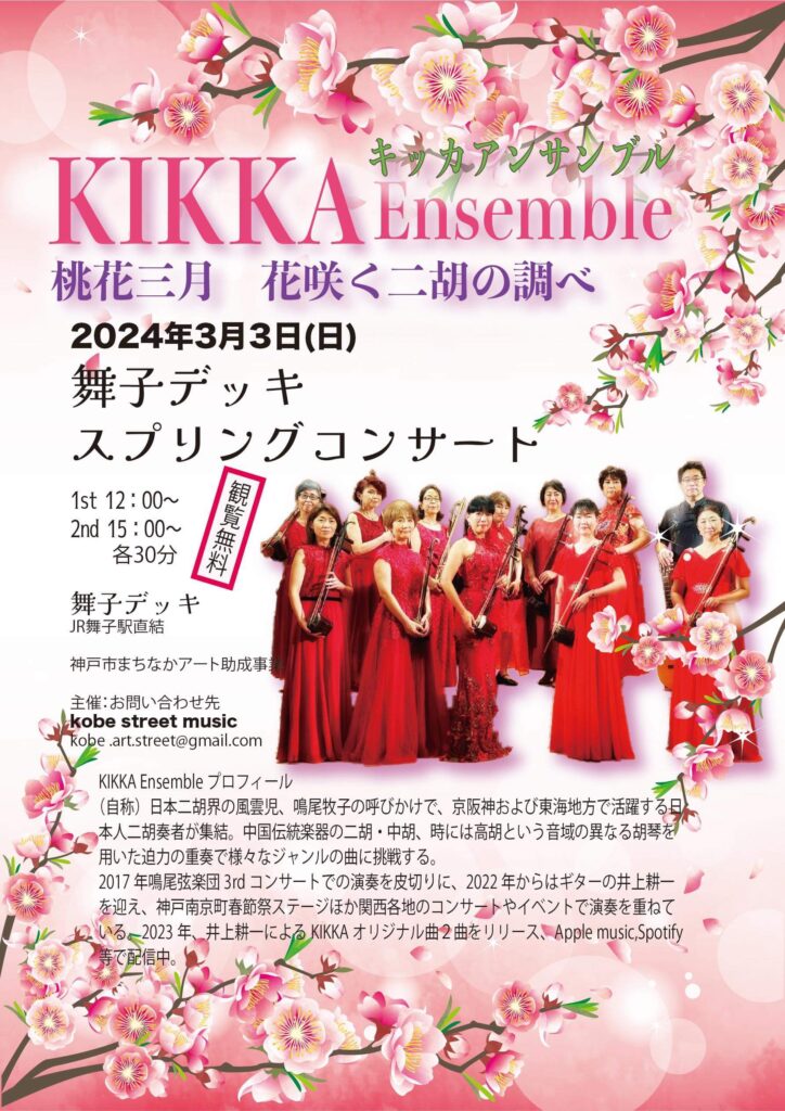 2024年3月3日(日)12:00〜、15:00〜(各30分) 舞子デッキ 神戸市垂水区東舞子町8-1 JR舞子駅すぐ 観覧無料 早春のみぎり、漢服姿で優雅に二胡を奏でるKIKKAに会いにきてください。 Follow me! @niyakuma